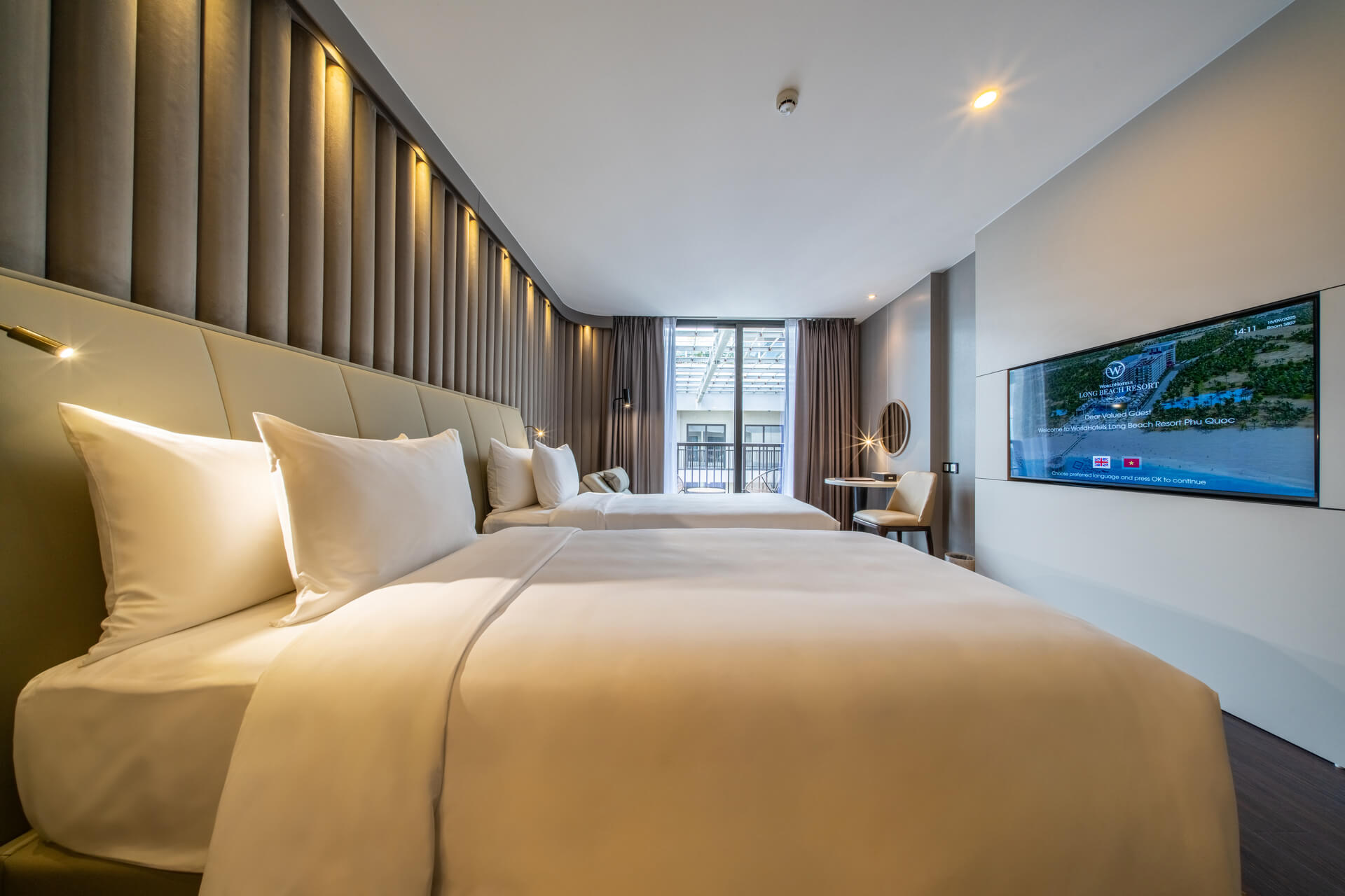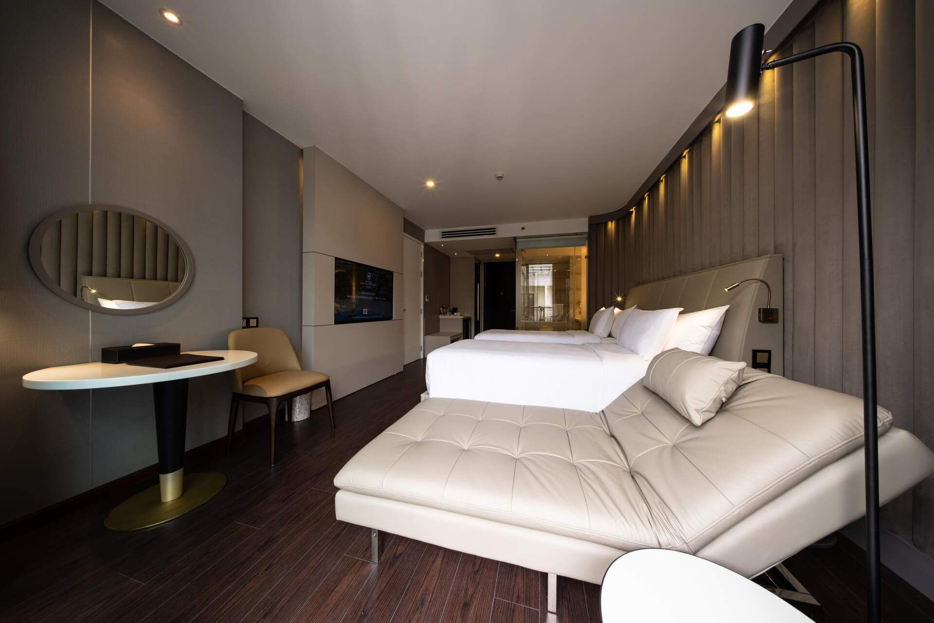 Deluxe Twin là lựa chọn linh hoạt cho nhóm bạn, đồng nghiệp công tác chung, hoặc gia đình có trẻ nhỏ. Không gian vừa đủ, giường ngủ tách biệt và đầy đủ tiện nghi giúp mọi thành viên đều cảm thấy riêng tư và thoải mái trong suốt kỳ nghỉ.